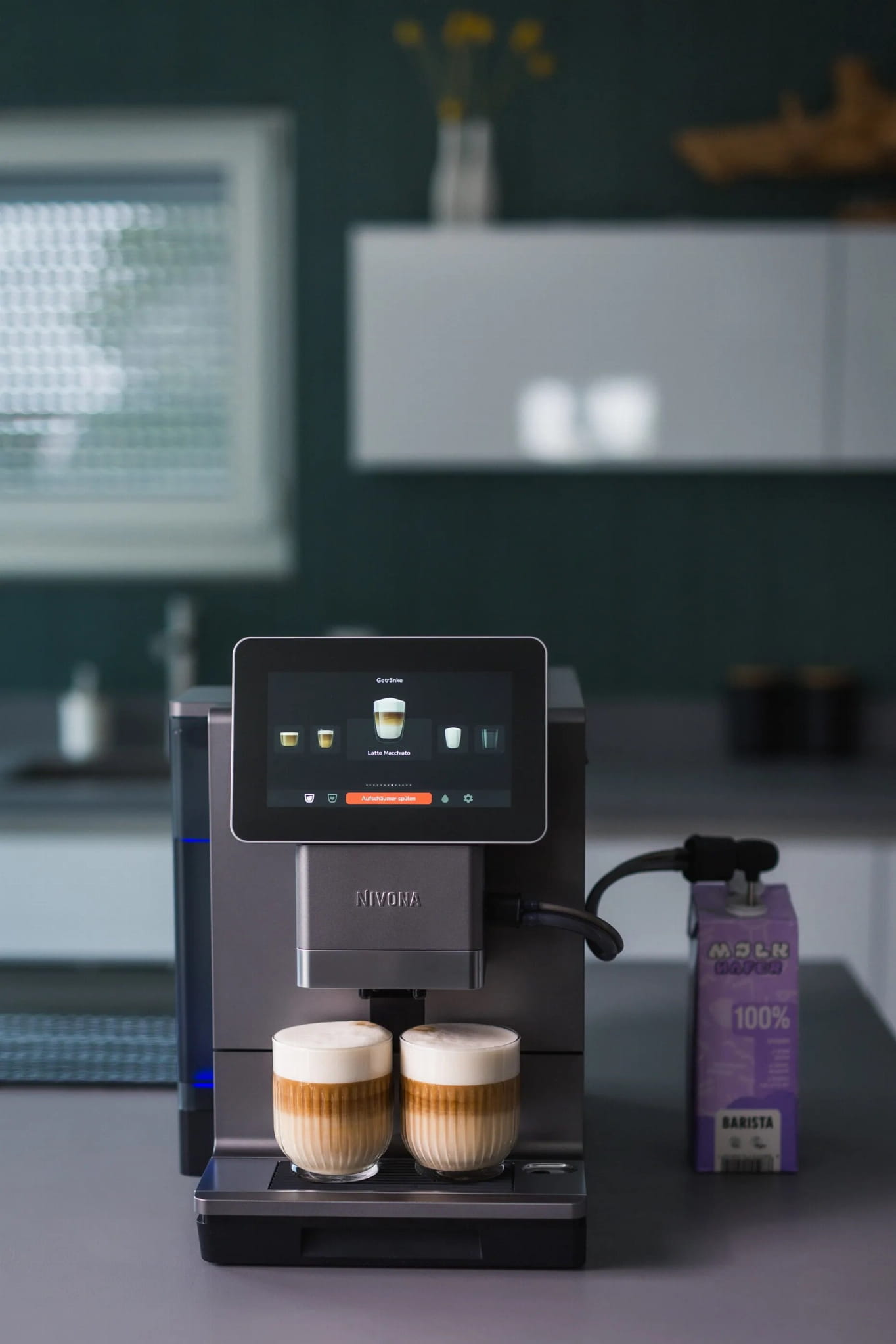 Ekspresy ciśnieniowe NIVONA Nivona NIVO 9101 to nowoczesny, w pełni automatyczny ekspres do kawy, który pozwala przygotować wiele rodzajów kaw – od espresso i americano, przez kawy mleczne – (cappuccino, latte), aż po kawy na zimno (Chilled Brew). Ekspres umożliwia przygotowanie 2 kaw jednocześnie. Posiada on wygodną opcję zapisu własnych ustawień ulubionych napojów. Ma duży 7″ ekran dotykowy dzięki, któremu łatwo wybrać rodzaj napoju. Zaletą ekspresu jest automatyczne programy czyszczenia i odkamieniania. Urządzenie jest wygodne w obsłudze i idealne do domu lub małego biura. Dane techniczne Dane podstawowe Typ ekspresu: Automatyczny Ciśnienie [bar]: 15 Moc [W]: 1465 Typ młynka: Stalowy Rodzaj kawy: Mielona, Ziarnista Dostępne napoje: Americano, Caffe Latte, Cappuccino, Chilled Americano, Chilled Coffee, Chilled Espresso, Espresso, Espresso Macchiato, Flat White, Gorąca woda, Kawa czarna, Latte Macchiato, Spienione mleko Spienianie mleka: Tak Funkcje: Sterowanie smartfonem, Dotykowy ekran, Funkcja Moja Kawa, Pojemnik na mleko, Regulacja ilości zaparzanej kawy, Regulacja mocy kawy, Parzenie 2 kaw jednocześnie, Regulacja stopnia zmielenia kawy, Regulacja temperatury kawy, One Touch Cappuccino, Wbudowany młynek, Spienianie mleka, Wskaźnik poziomu wody, Filtr Higiena i czyszczenie: Automatyczna funkcja płukania dla OneTouch SPUMATORE, Automatyczne czyszczenie systemu mlecznego, Automatyczny program czyszczenia i odkamieniania, Możliwość ustawienia twardości wody, Przypomnienie o wymianie filtra, Wyjmowana tacka ociekowa, Wyjmowany blok zaparzający, Wyjmowany zbiornik na wodę