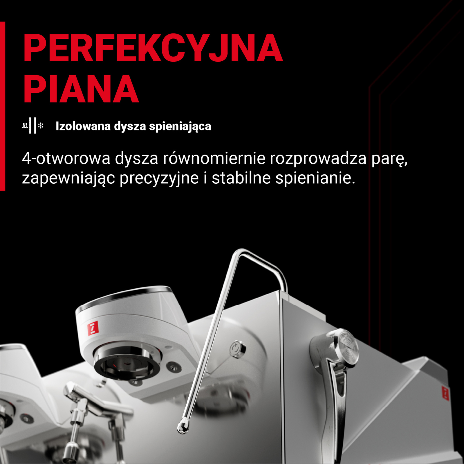 Niezależna kontrola każdej grupy zaparzającej Każda z grup w ekspresie kolbowym RAPTOR umożliwia indywidualne ustawienie parametrów, takich jak temperatura, czas ekstrakcji i preinfuzja. Sterowanie odbywa się za pomocą intuicyjnego ekranu dotykowego, który podczas parzenia wyświetla kluczowe informacje w czasie rzeczywistym. Dbałość o szczegół Każda krawędź i przejście są perfekcyjnie wypolerowane technologią diamentową, dając aksamitną gładkość w dotyku. Podstawy nóżek w kształcie litery „Z” wyposażono w silikon tłumiący drgania, zapewniając idealną równowagę między mocą a stabilnością. Refleksy światła przesuwające się po błyszczących panelach bocznych ożywiają powierzchnię.